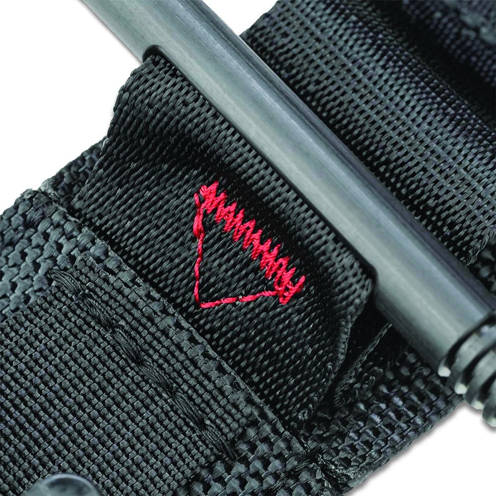 • SLACK INDICATOR WEDGE – Stitched into the Performance Compression Band below the windlass, the contrasting wedge offers a visual confirmation you have pulled all excess slack from the band. This is a critical step for proper tourniquet application and results in fewer required windlass rotations to reach occlusion.