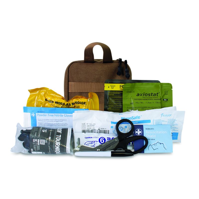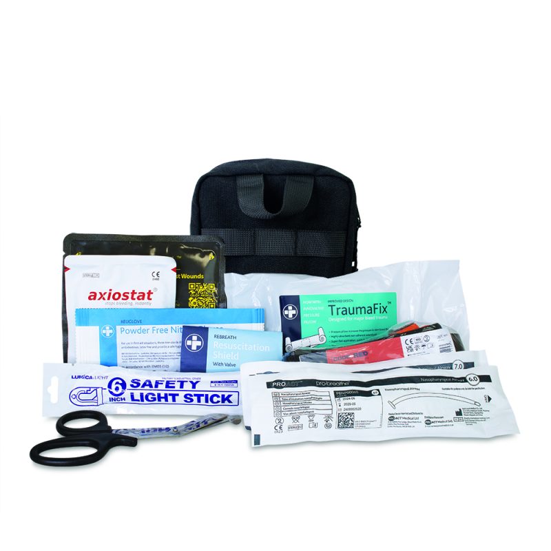 Vital Equipment: Contains essential tools to control bleeding, maintain airways, and stabilise patients.