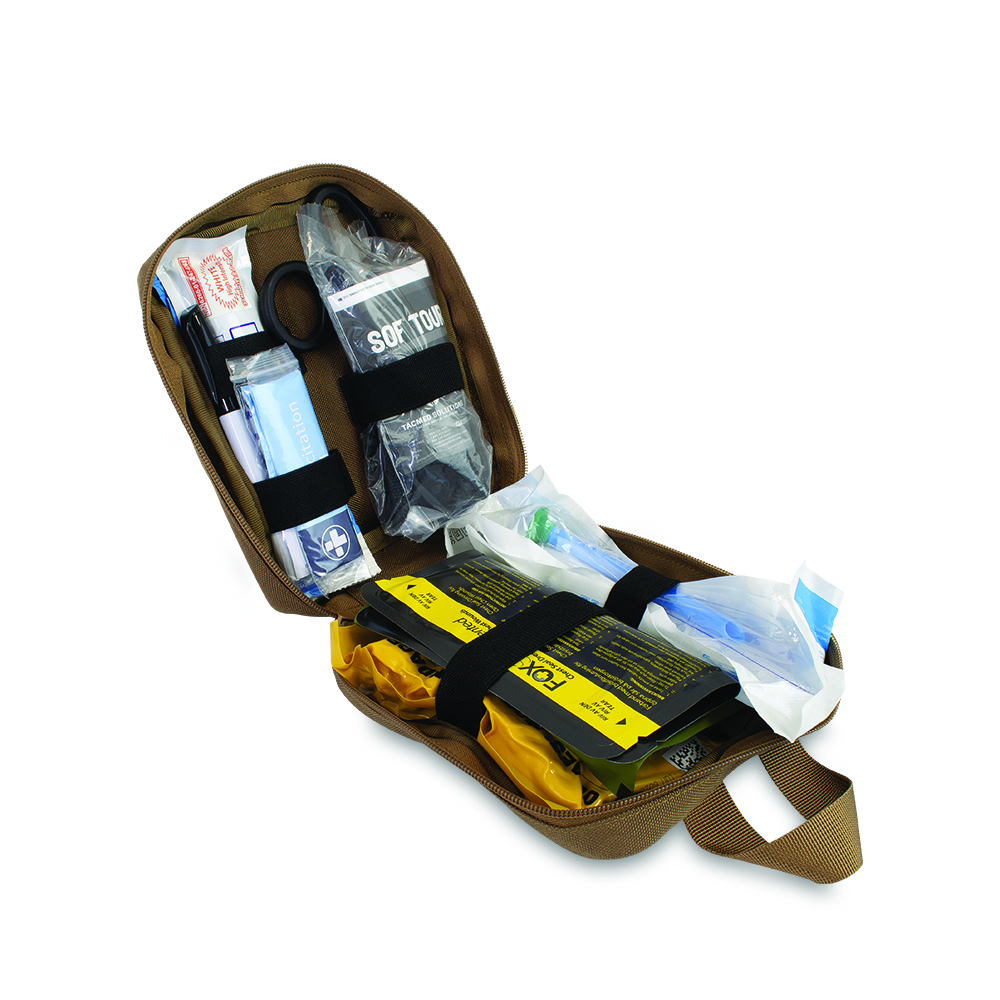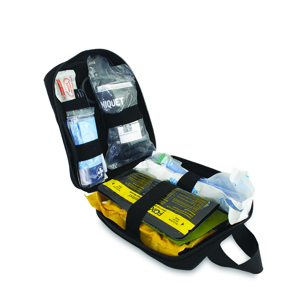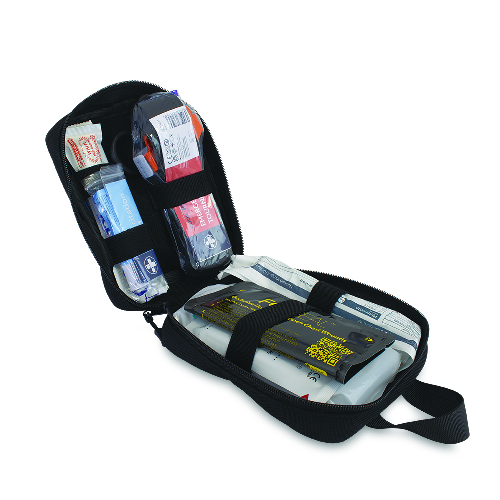• WOUND PAD – Covers the injury site to assist with sustained bleeding control and keep the wound clear of debris. It’s non-adherent compartment keeps gauze tucked neatly inside for rapid access during application.