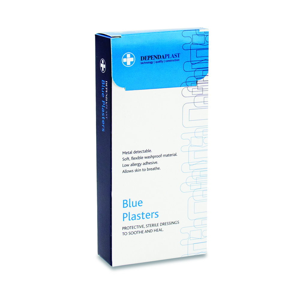 Dependaplast – Metal Detectable Washproof Plasters – 2cm x 12cm – Blue – Box of 50