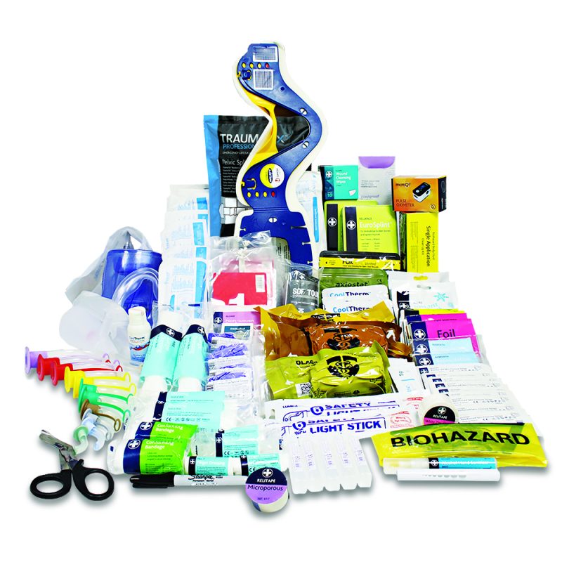 Designed to deal with life-threatening injuries, the types of which cannot be dealt with by a standard first aid kit.