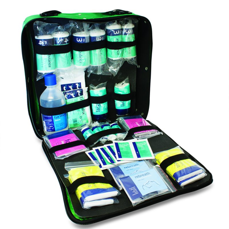 BS8599-1: 2019 compliant work place Critical Injury Kit in Green Technician Bag.
