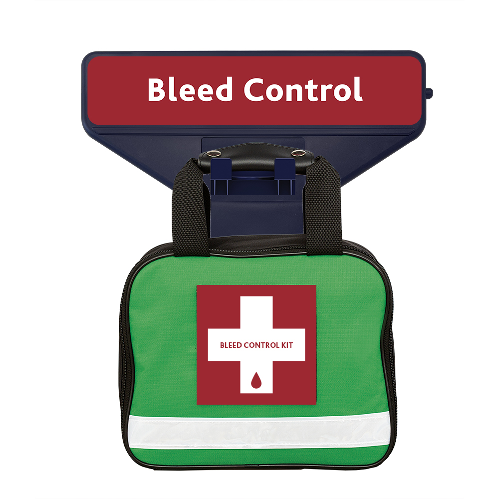 Public Access Trauma bleed control kit in Green Technician bag supplied with AuraPoint modular wall bracket.