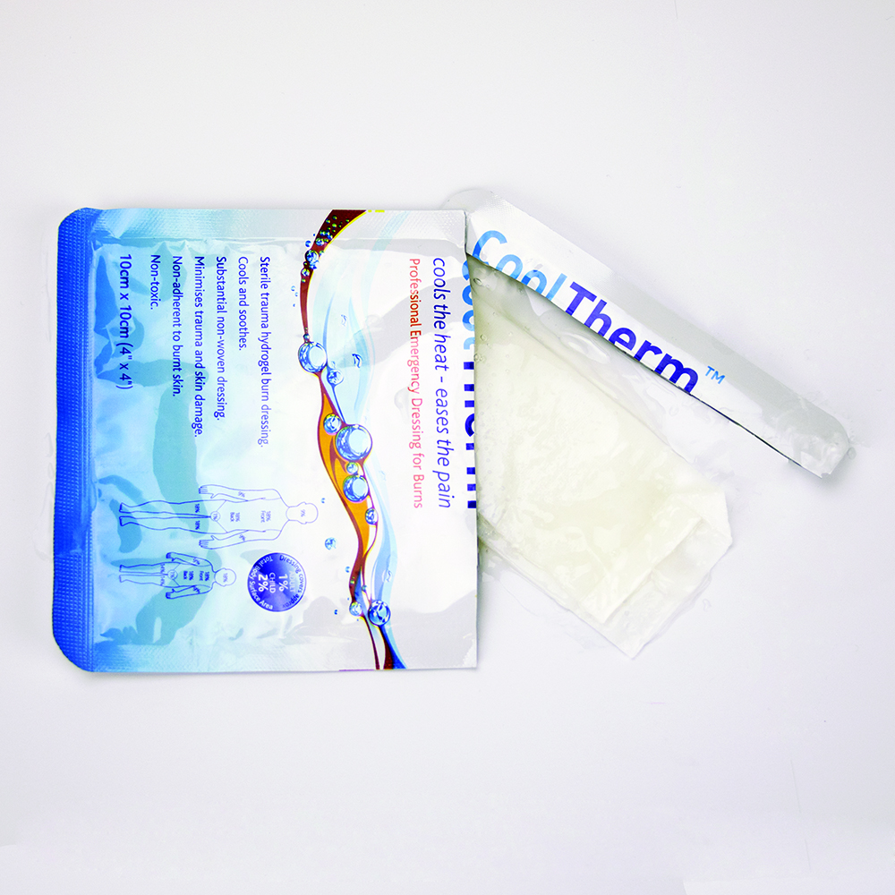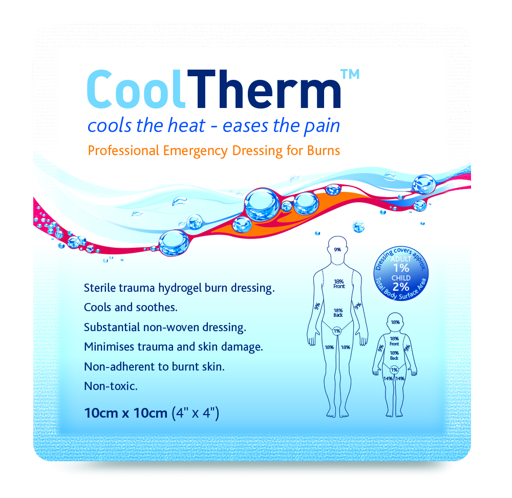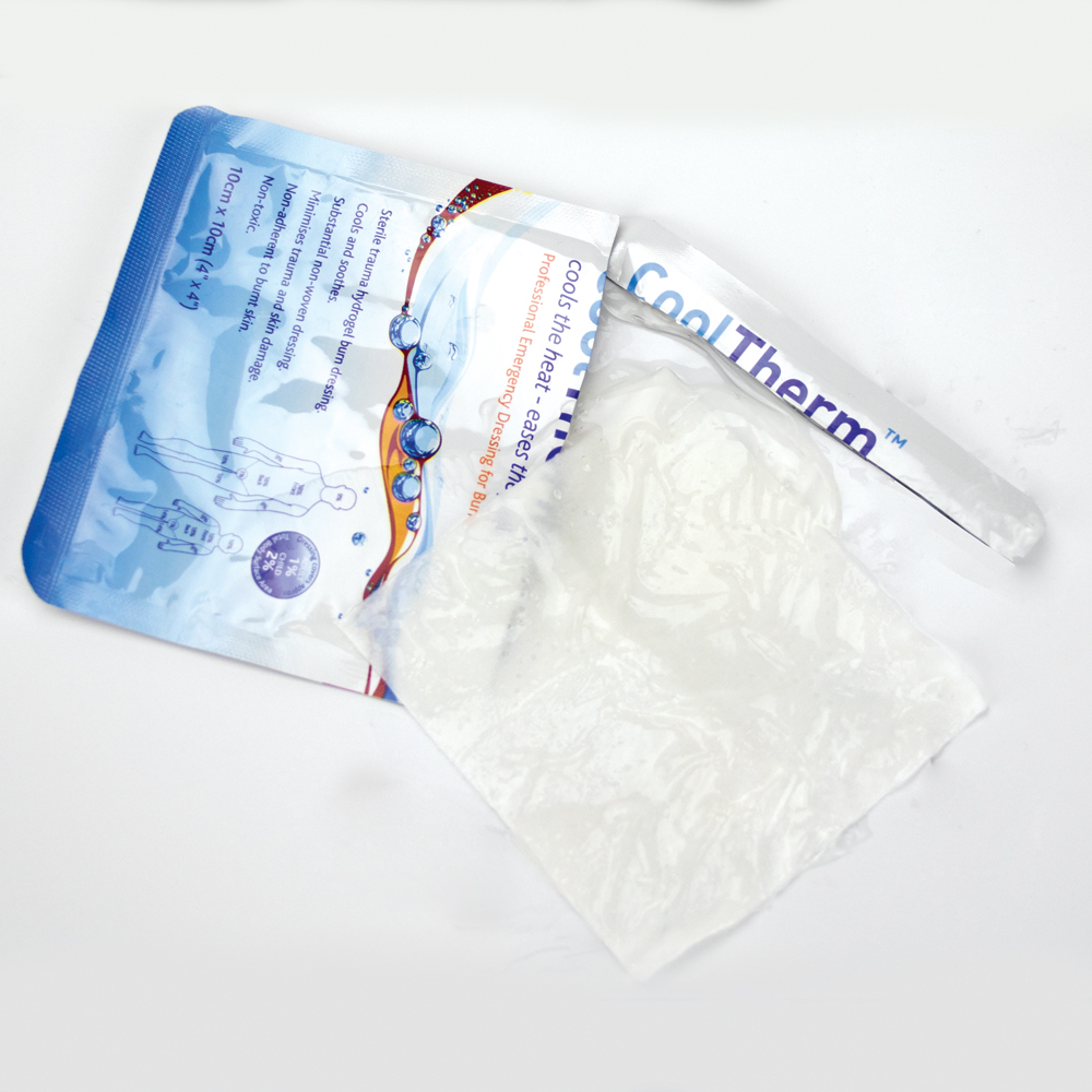 The most popular size in the range of CoolTherm Dressings. The perfect square of 10cm x 10cm is suited to a majority of injuries. It is ideal for use on the hand (back or palm), arm, leg, torso, or any area of the body where joint movement doesn’t inhibit application. The size is small enough for a typical domestic or workplace burn, but large enough to provide protection beyond an average wound perimeter.