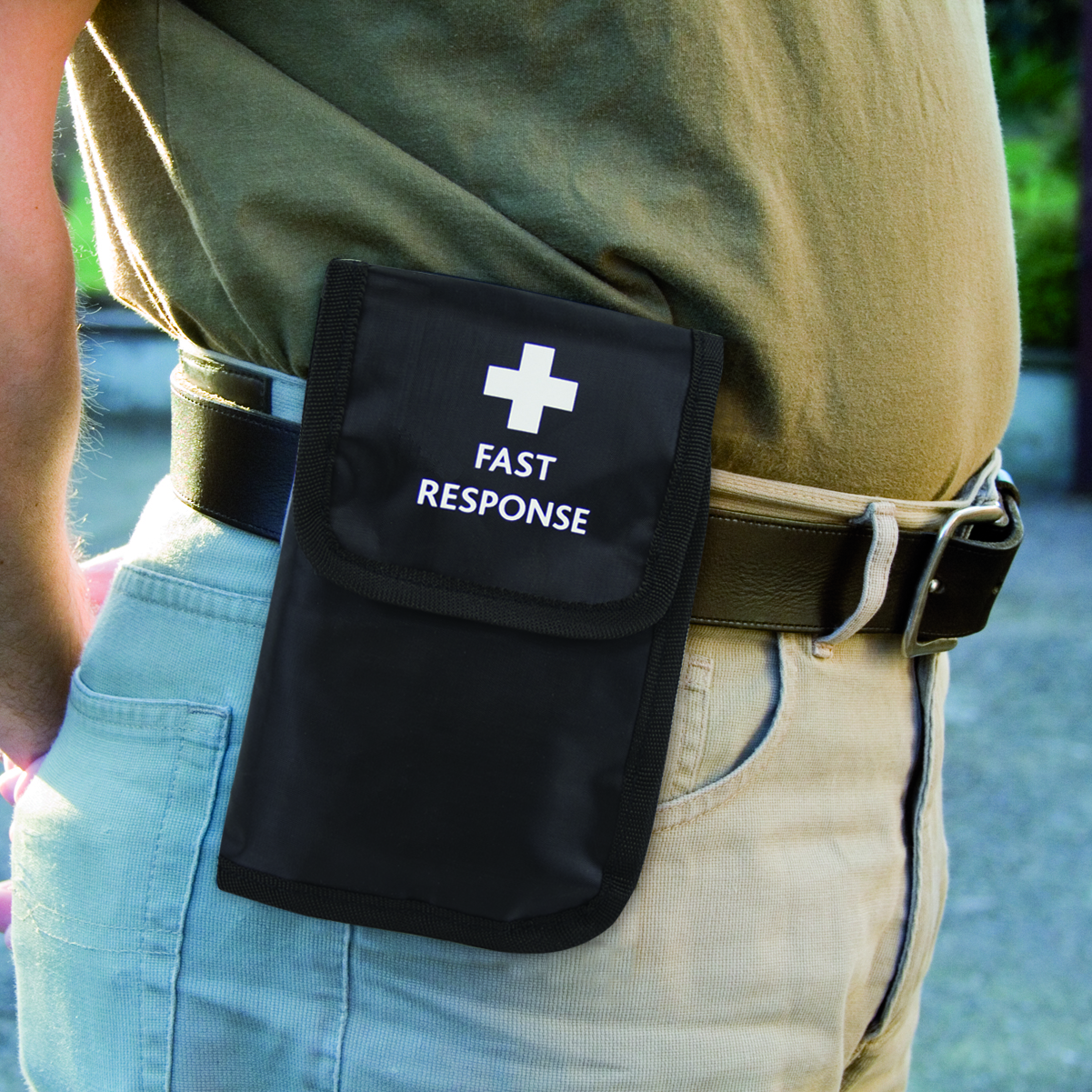With a simple belt-loop attachment, this is the perfect home for essential items like resuscitation shields, gloves, aprons and many other disposable personal protection items. Responders can be confident of always having at hand the means to protect themselves while administering first aid. Velcro fastenings.