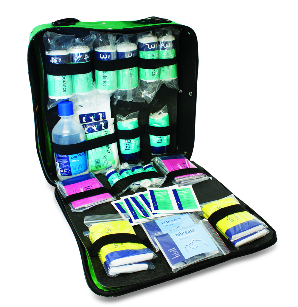 Fast response kit designed for major incidents and emergencies. The bag opens like a shell to easily expose the loops and straps that hold each individual item in place. This allows clear identification and access to a wide range of components ideal for emergency use. The content is extensive with a broad spectrum of products in greater numbers. All of the dressings in this kit have thicker, extra absorbent pads, which are capable of dealing with more serious wounds or severe bleeding.