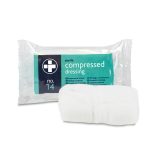 Also known as ‘mines’ dressings because of their long association of use in the mining indutry, these dressings are intended to provide a thick absorbent sterile pad, while taking up as little room as possible. Compressed and packaged into a compact wrapping, these dressings may look small, but are still up to the job of dealing with moderate injuries.