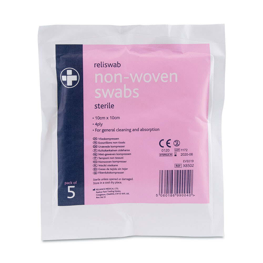 Reliswab Non-Woven Swabs – 10cm x 10cm – Pack of 5